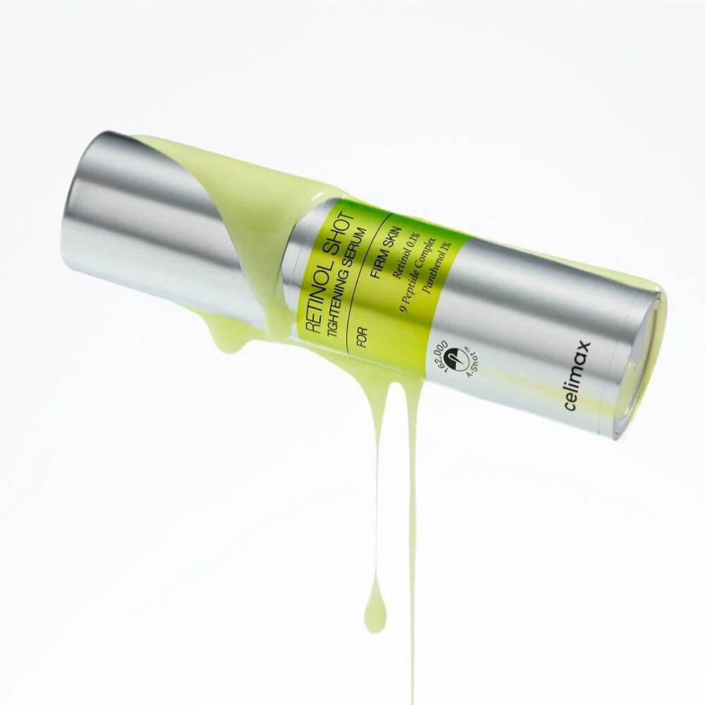 Celimax Le sérum Vita−A Retinol Shot Tightening Serum est un sérum contenant du rétinol et des microaiguilles pour des soins complexes anti-âge. Elle augmente la fermeté de la peau, réduit la profondeur des rides et prévient la relâche. La texture légère est rapidement absorbée sans laisser de sensation collante ou élastique.